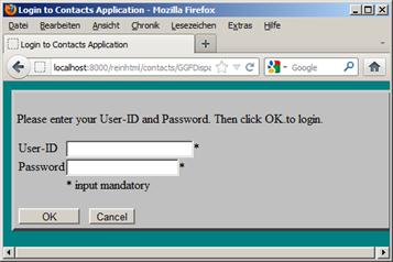 die Web-Anwendung über den URL Ihres Servers gestartet werden. Zum Beispiel: http://contacts.freetzi.com .