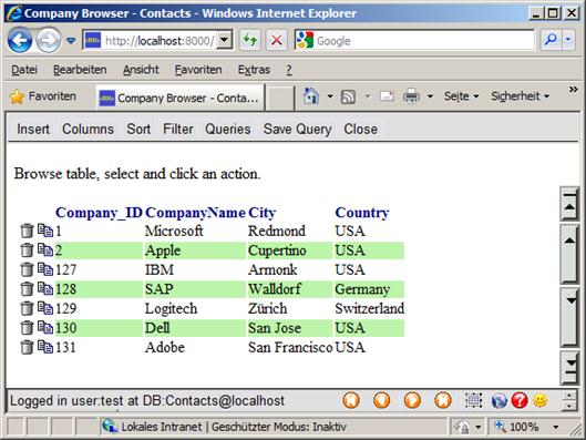 Datenbankmanagement-Anwendung erlaubt es Tabellen, die ihre Anwendung