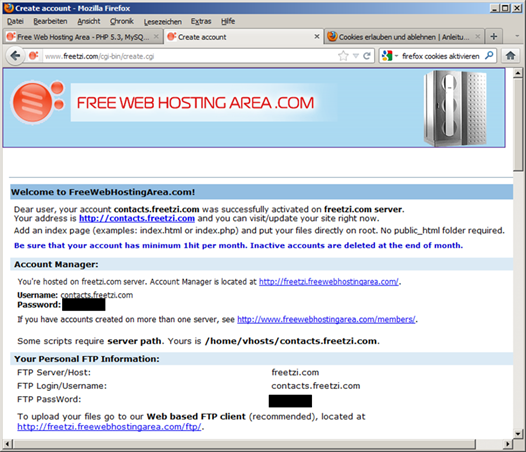 um ihre FTP Benutzerkennung und das Passwort für Ihren FTP Server Account