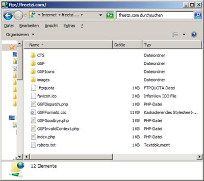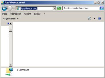 einfach die URL Ihres FTP Servers (in unserem Beispiel FTP://freetzi.com) in die Adresszeile des Windows